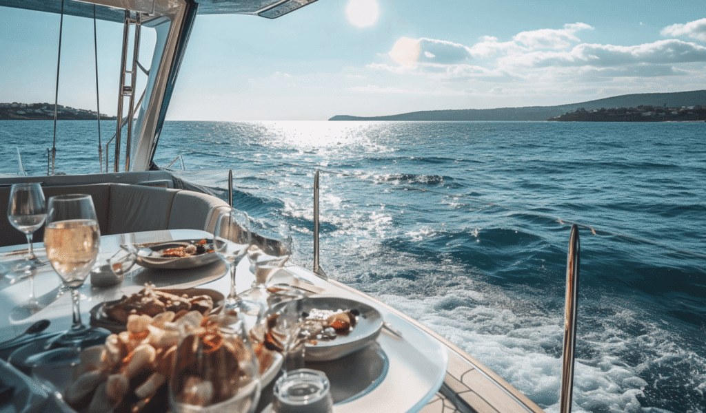 - Обеды на борту: некоторые туры включают полноценные блюда, такие как салаты, мясные или рыбные блюда, паста и гарниры.